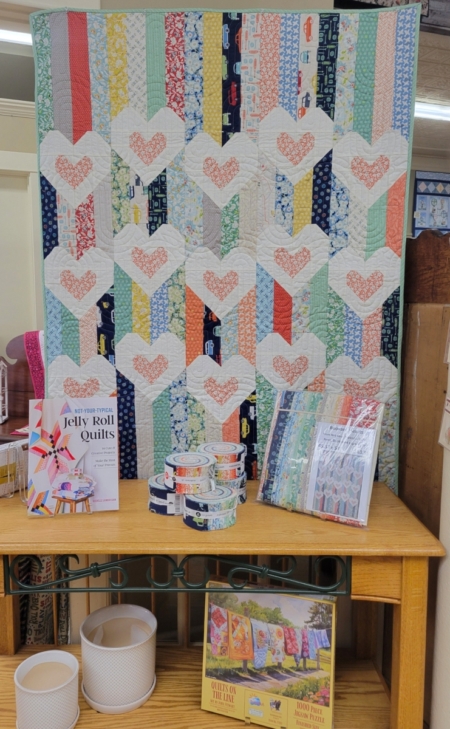 A jelly roll from Laundry Basket Quilts ‘Sweet Ride’ collection makes this quilt fun and happy. From the book, Not Your Typical Jelly Roll, sold separately at 20% off. 40.5″ x 54″