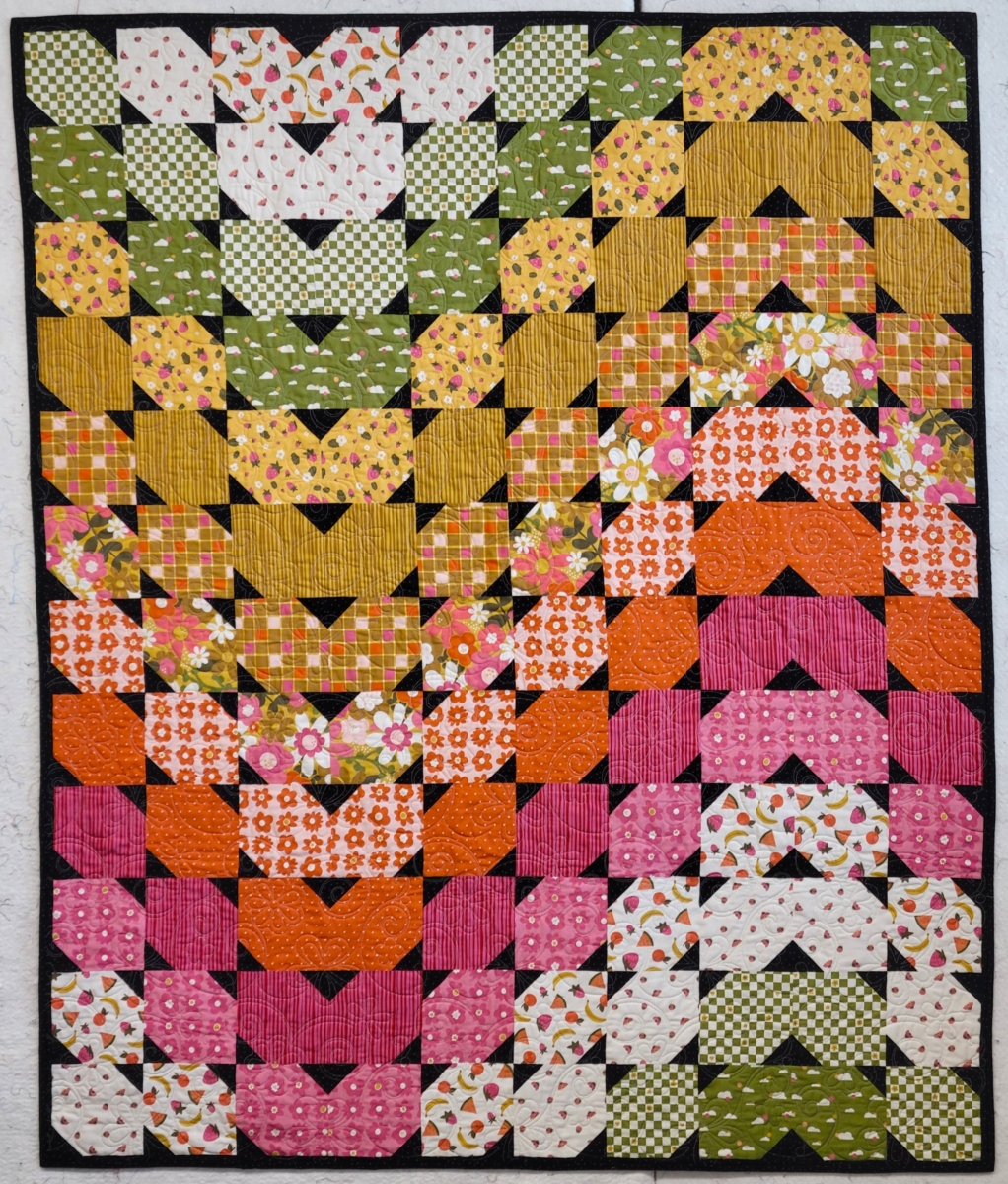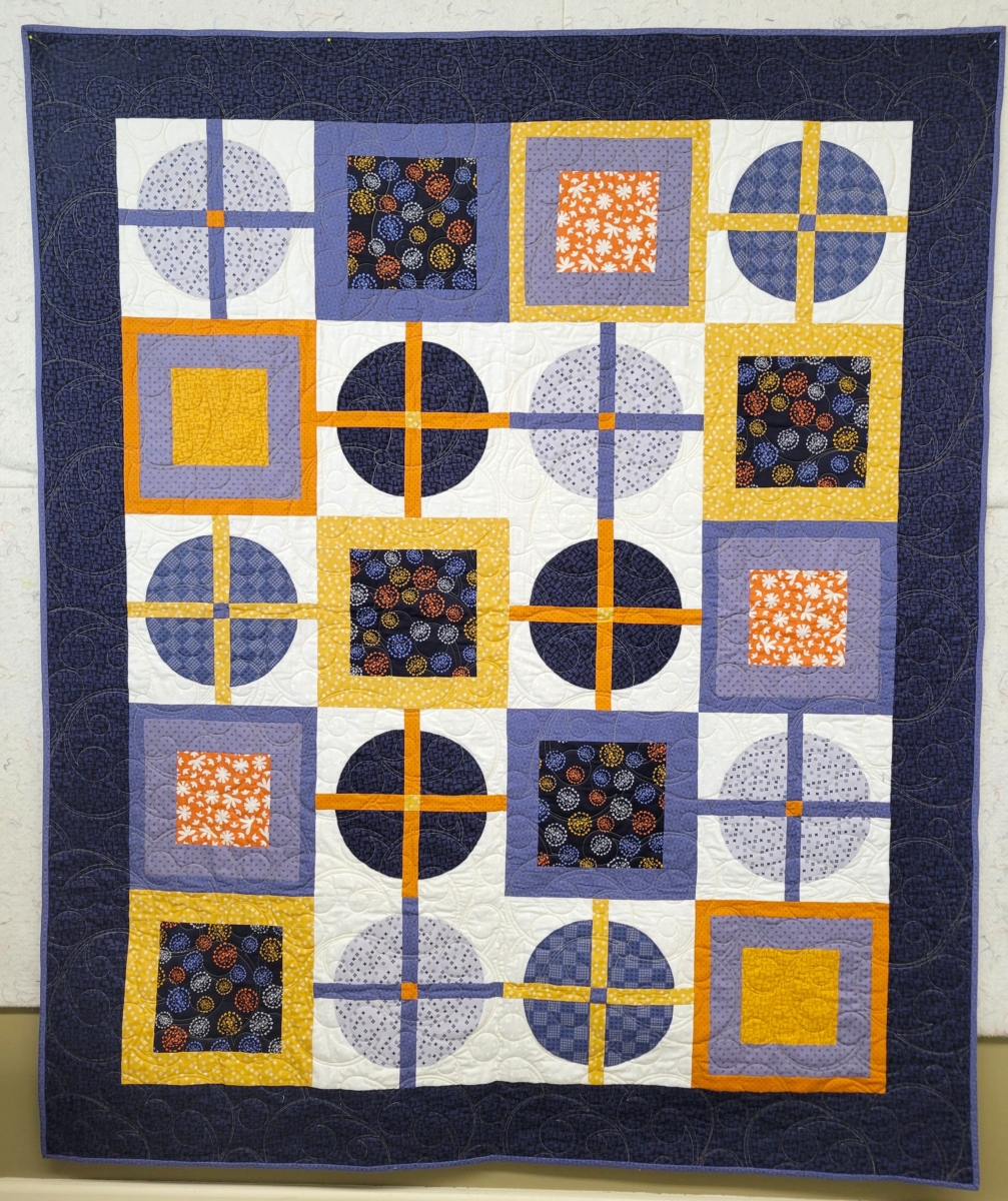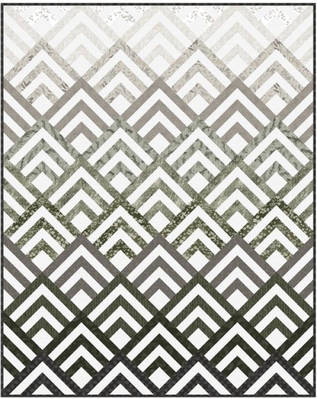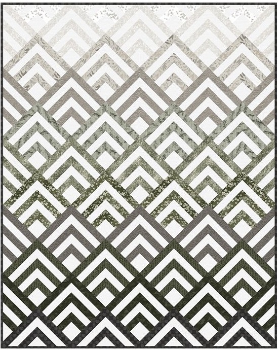 We love the light-to-dark shading on this urban-feel quilt using the ‘Tranquility’ line by Nicole Ruiz from FIGO. 60″ x 75″ .