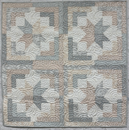 This darling baby quilt is made with the Honey Bunny collection from Maywood. 40″ x 40″ .