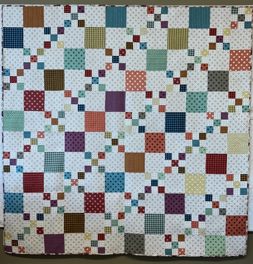 Cranberry Chain is made from Laundry Basket Quilts Quintessential collection of dots, checks and stripes. It measures 72″ x 72″.