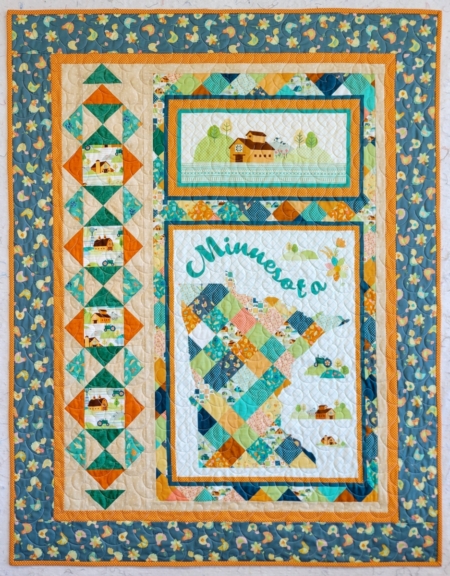 The All Minnesota Shop Hop panel is featured in this quilt that’s perfect for a throw or a wallhanging. 42″ x 54″
