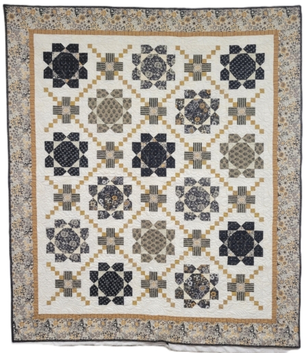 Paper Petals is made with the Posh collection by BasicGrey for Moda. We love the classic black and tan combination. It measures 67″ x 77″.