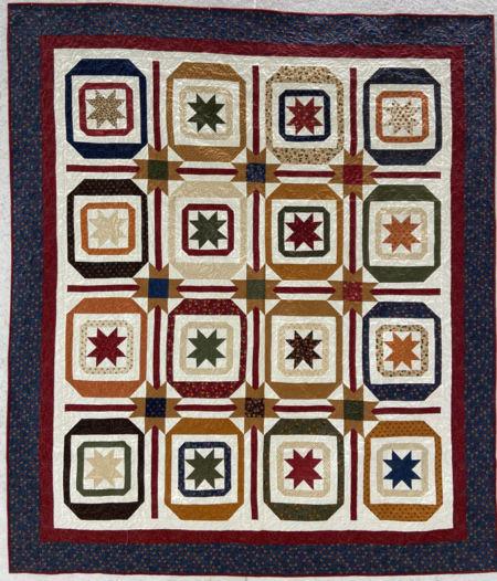 This one-of-a-kind quilt is designed to be both functional and beautiful. Made from high-quality quilt shop fabrics, meticulously pieced by an expert quilter and finished by professional longarm quilters, ensuring exceptional craftsmanship and durability. These quilts have been carefully maintained, used exclusively for display purposes only.