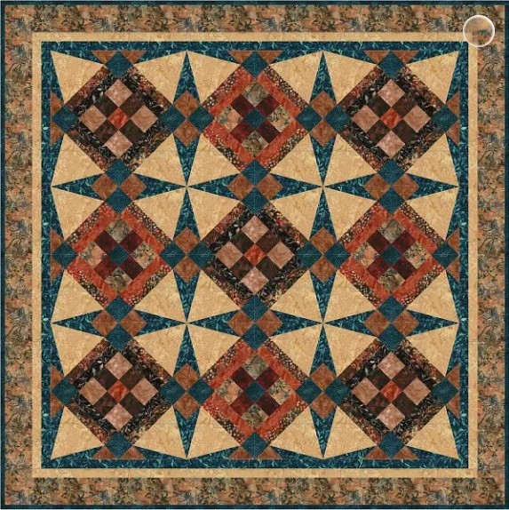 This luscious quilt will give you a severe case of Spring Fever. Gorgeous iris panel with vibrant accents. The pattern offers this wall hanging size along with twin and queen sizes. 46″ x 66″