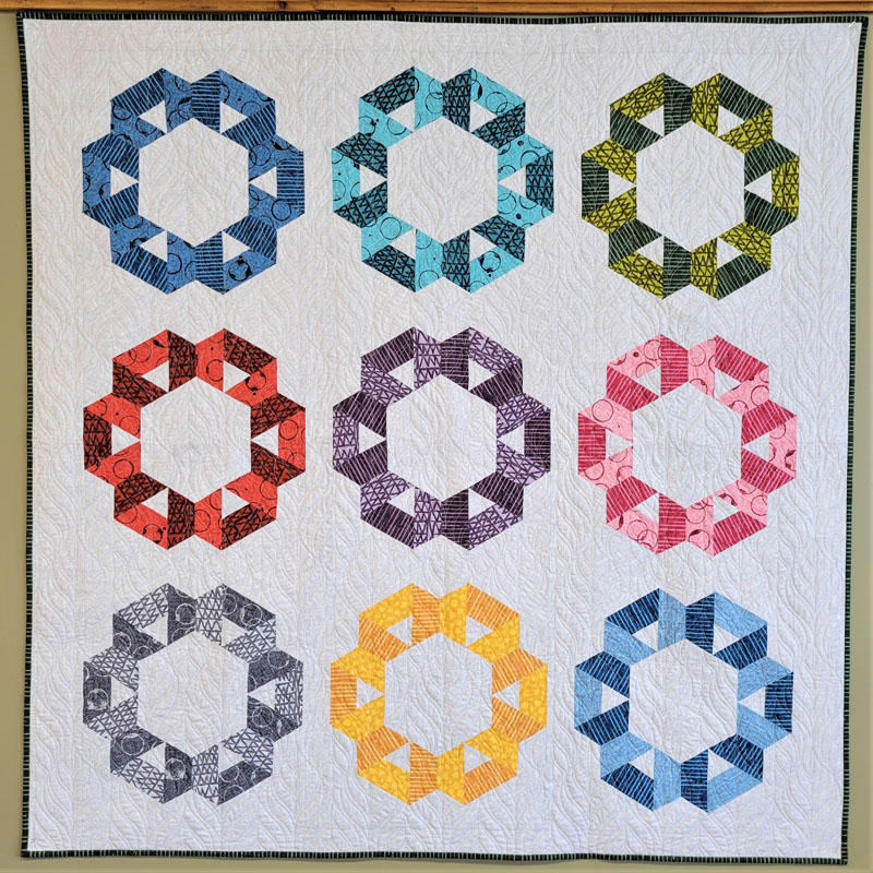 This one-of-a-kind quilt is designed to be both functional and beautiful. Made from high-quality quilt shop fabrics, meticulously pieced by an expert quilter and finished by professional longarm quilters, ensuring exceptional craftsmanship and durability. These quilts have been carefully maintained, used exclusively for display purposes only.
